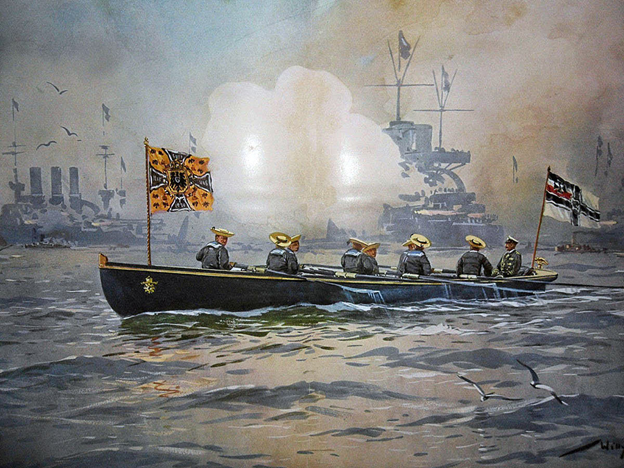 Painting: “Kaiser Wilhelm II Inspecting the Imperial German High Seas Fleet before the First World War” by Willy Stöwer